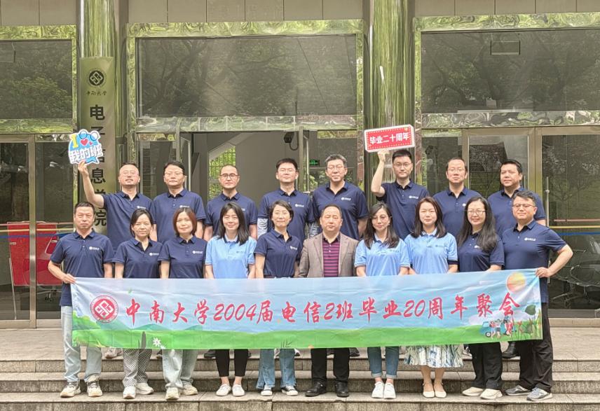 明媚初夏,青春重聚,青葱岁月流逝,校园时光不老。2024年5月2日,适逢五一假期,毕业二十周年之际,中南大学电子信息科学与技术专业2004届2班校友返回母校,重温二十年多年前在铁道学院求学生活的点滴记忆。