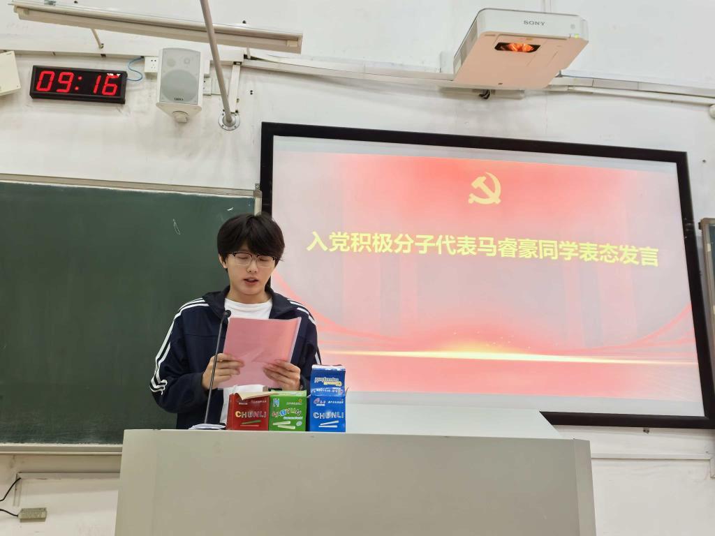 发展对象学员刘诗怡、入党积极分子学员马睿豪分别作为代表发言。他们表达了对党组织给予宝贵学习机会的感谢,并表示将严格遵守党校纪律,以严肃认真的态度投入学习,不断提高理论素养和思想境界,锤炼党性修养,努力提升综合素质,以实际行动践行入党初心,不辜负党组织的培养和期望。