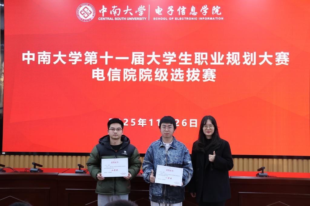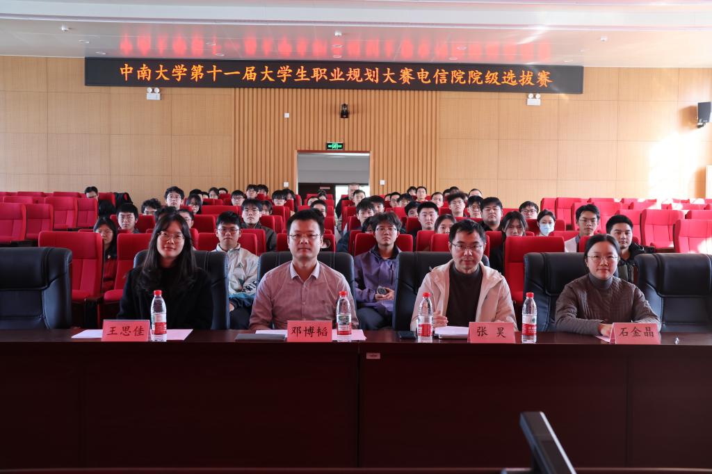 2025年11月26日下午,中南大学第十一届大学生职业规划大赛电信院院级选拔赛于天心校区电子楼601报告厅成功举行。yl88858永利集团副院长石金晶教授、电子信息工程系主任张昊教授,长沙景嘉微电子股份有限公司数字电路研究室主任邓博韬,中兴通讯股份有限公司人力资源部华中区招聘经理王思佳,以及学院各班代表共同出席本次比赛。院级选拔赛由学院研究生会主席刘贯洲主持。